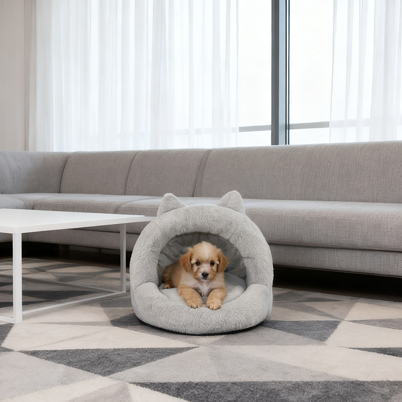 Give your pet a warm, den-like retreat with this semi-enclosed cave bed, designed for small to medium dogs and cats who love to burrow. The soft short plush fabric traps heat effectively, making it an ideal winter bed for indoor pets.